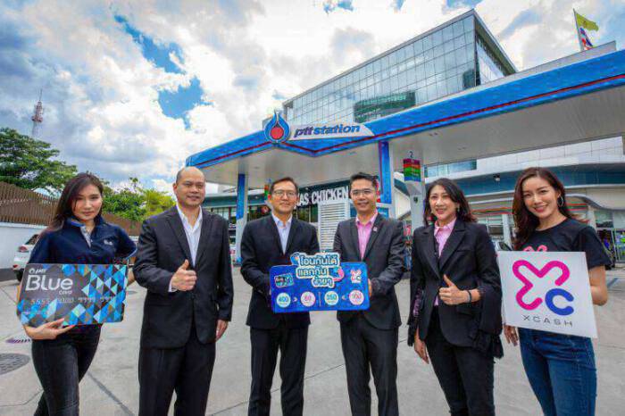 นายนนทิ ศัพทเสวี ผู้อำนวยการอาวุโส บริษัท ดิจิต้าไลฟ์ คอร์ปอเรชั่น จำกัด (DLC)  (ที่ 3 จากขวา) และ นายนิสิต พงษ์วุฒิประพันธ์ รองกรรมการผู้จัดการใหญ่กลยุทธ์องค์กร นวัตกรรมและความยั่งยืน บริษัท ปตท. น้ำมันและการค้าปลีก จำกัด (มหาชน) หรือ โออาร์ (ที่ 3 จากซ้าย) ร่วมกันเปิดแคมเปญ “โอนกันได้ แลกกันง่ายๆ” โอนคะแนนสะสมระหว่างสมาชิกแอปพลิเคชัน “เอ็กซ์แคช” (xCash) และ บลูการ์ด (Blue Card) เพื่อใช้จ่ายแลกซื้อสินค้าและบริการบนแอปพลิเคชั่นเอ็กซ์แคช และใช้คะแนน สะสมบลูการ์ด ที่สถานีบริการน้ำมัน พีทีที สเตชั่น (PTT Station) และร้านค้าที่ร่วมรายการ  หรือรับสิทธิพิเศษต่าง ๆ ในแอปพลิเคชั่น บลูการ์ด จัดโปรโมชั่นสุดพิเศษสำหรับผู้บริโภค นักช้อป นักเดินทาง ตั้งแต่ 15 กรกฎาคม 2563 จนถึง 15 มิถุนายน 2564 ดูรายละเอียดเพิ่มเติมได้ที่ https://www.xcashrewards.com/privilege