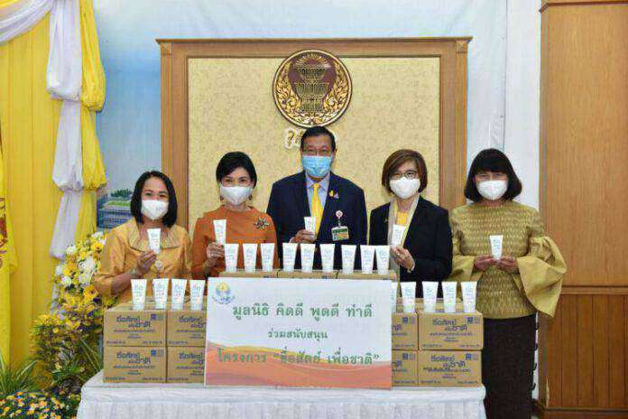 นางสาววราภรณ์ กุลสวัสดิ์ภักดี (ที่ 2 จากขวา) ประธานโครงการซื่อสัตย์เพื่อชาติมอบเจลแอลกอฮอล์ “ซื่อสัตย์เพื่อชาติ” ให้กับสำนักงานเลขาธิการวุฒิสภา เพื่อนำไปแจกจ่ายให้กับสมาชิกวุฒิสภา และนำไปใช้เป็นสาธารณ ประโยชน์ในการดูแลสุขอนามัยและป้องกันโรคโควิด-19 โดยได้รับเกียรติจาก นายพรเพชร วิชิตชลชัย (กลาง) ประธานวุฒิสภา เป็นผู้รับมอบ ณ สำนักงานเลขาธิการวุฒิสภา เมื่อเร็ว ๆ นี้