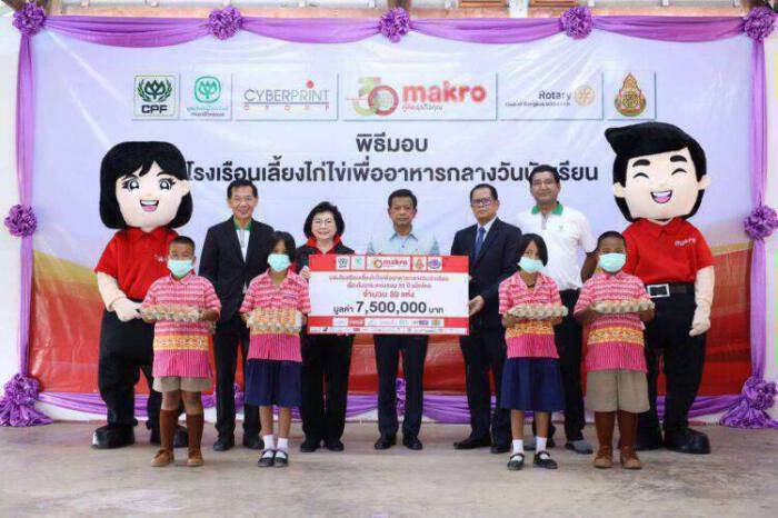 นางศิริพร เดชสิงห์ รองประธานเจ้าหน้าที่บริหาร สายงานการสื่อสารองค์กร บริษัท สยามแม็คโคร จำกัด (มหาชน) กล่าวว่า หลังจากได้รับการสนับสนุนจากพันธมิตรทางธุรกิจ ลูกค้าสมาชิก ร่วมกันนำโภชนาการที่ดีขยายไปสู่เยาวชนในถิ่นทุรกันดาร จากข้อมูลของสำนักงานคณะกรรมการการศึกษาขั้นพื้นฐาน กระทรวงศึกษาธิการ พบว่า ยังมีนักเรียนระดับประถมศึกษาที่มีภาวะทุพโภชนาการมากถึง 16.5% ล่าสุด แม็คโคร ได้ทยอยส่งมอบโรงเรือนเลี้ยงไก่ไข่เพื่ออาหารกลางวันนักเรียน ให้กับ 30 โรงเรียน สังกัดสำนักงานคณะกรรมการการศึกษาขึ้นพื้นฐาน (สพฐ.) และโรงเรียน ตชด. ในถิ่นทุรกันดารทั่วประเทศ อาทิ โรงเรียนหมู่บ้านสหกรณ์ 2 อ.แม่ออน จ.เชียงใหม่, โรงเรียนบ้านห้วยน้ำขาว อ.ดอยหล่อ จ.เชียงใหม่, โรงเรียนบ้านแม่ศึก (มูลนิธิธรรมาภิรักษ์อุปถัมภ์ที่ 2) อ.แม่แจ่ม จ.เชียงใหม่, โรงเรียนบ้านกองแขก อ.แม่แจ่ม จ.เชียงใหม่, โรงเรียน ตชด.บ้านหนองแคน อ.นาด้วง จ.เลย, โรงเรียนบ้านกุ้งส่อหงษา อ.สนามชัยเขต จ.ฉะเชิงเทรา, โรงเรียนบ้านนา อ.สนามชัยเขต จ.ฉะเชิงเทรา, โรงเรียนบ้านละว้าวังควาย อ.ด่านช้าง จ.สุพรรณบุรี ฯลฯ ซึ่งเมื่อรวมกับ 25 โรงเรียนที่ส่งมอบไปเมื่อปี 2558 ในวาระครบรอบการฉลอง 25 ปีของแม็คโคร ทั่วประเทศ จะมีทั้งหมด 55 โรงเรียนภายในเดือนกันยายน 2563