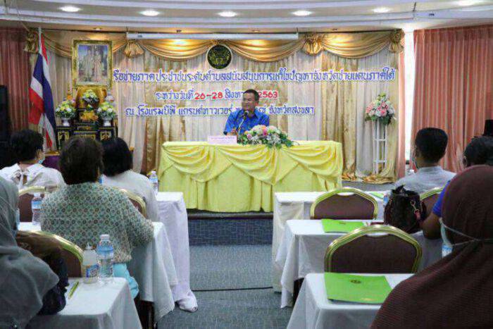 วันที่ 26 สิงหาคม 2563 เวลา 13.30. น. ที่ โรงแรม บีพี แกรนด์ ทาวเวอร์ อำเภอหาดใหญ่ จังหวัดสงขลา นายธรรมรงค์ คงวัดใหม่ รองเลขาธิการศูนย์อำนวยการบริหารจังหวัดชายแดนภาคใต้ (ศอ.บต.) เป็นประธานเปิดกิจกรรมเครือข่ายภาคประชาชนระดับตำบลสนับสนุนการแก้ไขปัญหาจังหวัดชายแดนภาคใต้ โดยกองประสานและเร่งรัดการพัฒนาพื้นที่พิเศษจังหวัดชายแดนภาคใต้ (ศอ.บต.) จัดขึ้นเพื่อมอบนโยบายแนวทางการปฏิบัติงานให้แก่เครือข่ายได้รับทราบถึงแนวทางการปฏิบัติงานกิจกรรมเครือข่ายภาคประชาชน ตลอดจนสร้างความรู้ความเข้าใจวิธีการจัดเก็บข้อ  มูล การติดตาม ประเมิน การปฏิบัติงานในพื้นที่ของเครือข่ายภาคประชาชนระดับตำบล และสร้างการมีส่วนร่วมของภาคประชาชนในการสนับสนุนการแก้ไขปัญหาและพัฒนาจังหวัดชายแดนภาคใต้ของภาครัฐให้เกิดผลอย่างเป็นรูปธรรม ซึ่งพิธีในครั้งนี้มีนายธนากร พรหมดวง แทนผู้อำนวยการกองประสานและเร่งรัดการพัฒนาพื้นที่พิเศษจังหวัดชายแดนภาคใต้ (ศอ.บต.) และเจ้าหน้าที่ที่เกี่ยวข้อง เข้าร่วม โดยมีเจ้าหน้าที่จากเครือข่ายภาคประชาชนระดับตำบล เข้าร่วมกว่า 150 คน