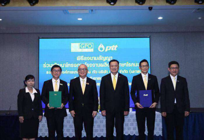 25 กันยายน 2563 เวลา 9.00 น. ณ อาคารสภาวิชาชีพ แพทยสภา กระทรวงสาธารณสุข นายอนุทิน ชาญวีรกูล รองนายกรัฐมนตรีและรัฐมนตรีว่าการกระทรวงสาธารณสุข และนายสุพัฒนพงษ์ พันธ์มีเชาว์ รองนายกรัฐมนตรีและรัฐมนตรีว่าการกระทรวงพลังงาน เป็นประธานในพิธีลงนามสัญญาร่วมพัฒนาโครงการโรงงานผลิตยารักษาโรคมะเร็ง ระหว่างองค์การเภสัชกรรม โดยนายแพทย์วิฑูรย์ ด่านวิบูลย์ ผู้อำนวยการองค์การเภสัชกรรม และบริษัท ปตท. จำกัด (มหาชน) โดยนายอรรถพล ฤกษ์พิบูลย์ประธานเจ้าหน้าที่บริหารและกรรมการผู้จัดการใหญ่บริษัท ปตท. จำกัด (มหาชน)