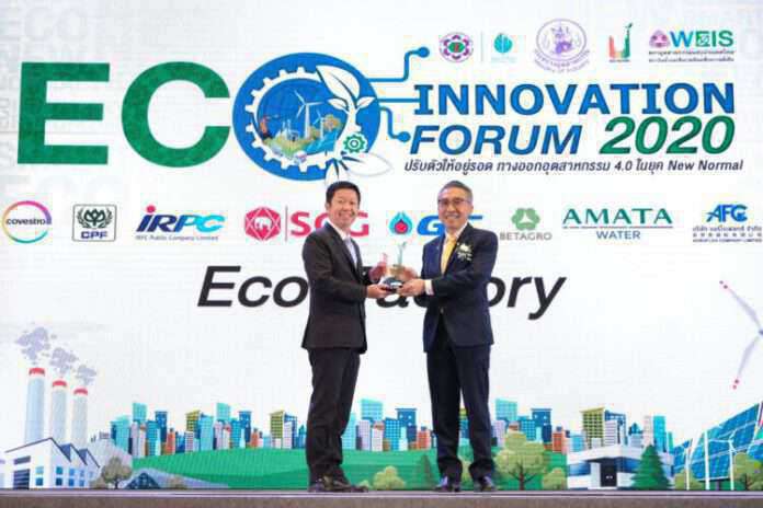 นายดำรงค์ศักดิ์ จัตุรงค์พัฒนา (ซ้าย) ผู้จัดการโครงการขยายการลงทุน บริษัท เหล็กสยามยามาโตะ จำกัด หรือ SYS ผู้ผลิตเหล็กเอชบีม ไวด์แฟรงค์ มานานมากกว่า 25 ปี เป็นผู้แทนเข้ารับมอบโล่รางวัล “Eco Factory – อีโค่ แฟคทอรี่” ในงานสัมมนาวิชาการประจำปี 2563 “Eco Innovation Forum 2020” จาก นายภานุวัฒน์ ตริยางกูรศรี (ขวา) รองปลัดกระทรวงอุตสาหกรรม ณ ศูนย์นิทรรศการและการประชุมไบเทค บางนา กรุงเทพมหานคร เมื่อไม่นานมานี้