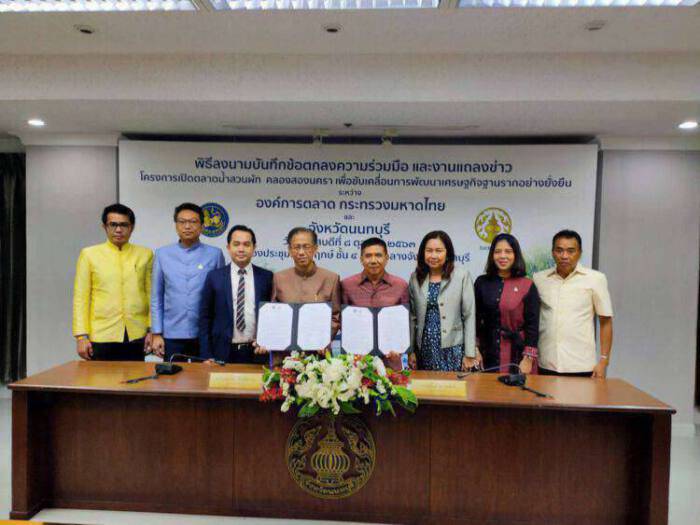 จังหวัดนนทบุรี จับมือ องค์การตลาด ร่วมลงนาม MOU ผสานการจัดตลาดน้ำสวนผัก คลองสองนครา มุ่งผลักดันการท่องเที่ยวตลาดน้ำวิถีใหม่ พร้อมเส้นท่องเที่ยวโดยจักรยานชมความงามสองนที นนทบุรี-ตลิ่งชัน