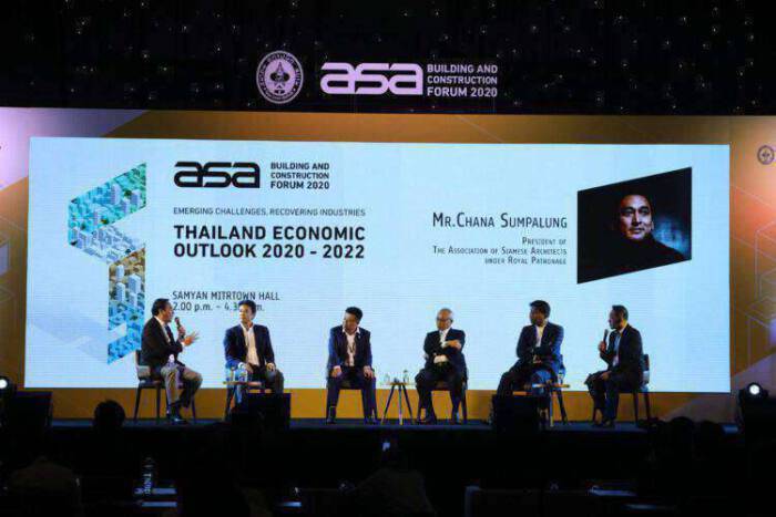 ภายในงาน “ASA Building And Construction Forum 2020” ภายใต้แนวคิด “Emerging Challenges, Recovering Industries” มีการจัดเสวนาในหัวข้อ “ทิศทางและแนวโน้มเศรษฐกิจไทยปี 2563 -2565” โดยสมาคมสถาปนิกสยาม ในพระบรมราชูปถัมภ์ ร่วมกับบริษัท เอ็น.ซี.ซี. เอ็กซิบิชั่น ออกาไนเซอร์ จำกัด (นีโอ) คณะผู้จัดงานสถาปนิก’64