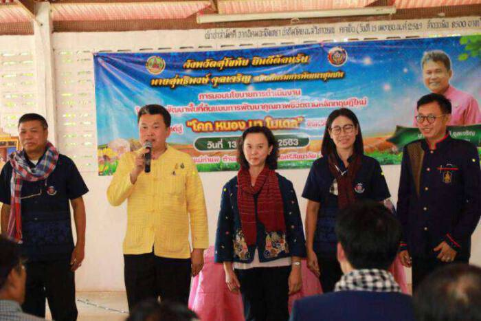 นายสุทธิพงษ์ จุลเจริญ กล่าวว่า รัฐบาลได้อนุมัติงบประมาณเงินกู้เพื่อฟื้นฟูหลังโควิด-19 ให้กรมการพัฒนาชุมชนดำเนินการโครงการพัฒนาพื้นที่ต้นแบบการคุณภาพชีวิตตามหลักทฤษฎีใหม่ประยุกต์สู่ “โคก หนอง นา โมเดล” กว่า 4,700 ล้านบาท มีผู้เข้าร่วมโครงการ 25,179 ครอบครัว กระจายอยู่ใน 3,246 ตำบล ทั่วประเทศไทยใน 73 จังหวัด โดยมุ่งหวังที่จะช่วยให้พี่น้องประชาชนได้พัฒนาคุณภาพชีวิตให้ดีขึ้นอย่างยั่งยืน โดยน้อมนำแนวพระราชดำริของพระบาทสมเด็จพระบรมชนกาธิเบศร มหาภูมิพลอดุลยเดชมหาราช บรมนาถบพิตร ซึ่งพระองค์ได้พระราชทานให้คนไทยทุกคนว่า เศรษฐกิจพอเพียงหรือทฤษฎีใหม่ จะทำความเจริญและช่วยให้ประเทศชาติรอดปลอดภัย นอกจากนี้ พระบาทสมเด็จพระวชิรเกล้าเจ้าอยู่หัว รัชกาลที่ 10 ทรงมีพระราชปณิธานในการสืบสาน รักษา ต่อยอดแนวพระราช ดำริของพระบาทสมเด็จพระบรมชนกาธิเบศร มหาภูมิพลอดุลยเดชมหาราช บรมนาถบพิตร โดยพระองค์ได้ทรงพระ ราชทานภาพวาดฝีพระหัตถ์ซึ่งบอกเล่าเรื่องราวความสุข ความหวัง ความรัก ความสามัคคี ที่เกิดขึ้นในครอบครัว นี่เป็นเครื่องยืนยันว่า โครงการนี้เป็นสิ่งที่ดีต่อพี่น้องประชาชน โดยกรมการพัฒนาชุมชนได้ร่วมกับภาคีเครือข่าย มีมูลนิธิกสิกรรมธรรมชาติ ของ ดร.วิวัฒน์ ศัลยกำธร หรืออาจารย์ยักษ์ มีอธิการบดีสถาบันเทคโนโลยีพระจอมเกล้าเจ้าคุณทหารลาดกระบัง ที่ส่ง ผศ.พิเชฐ โสวิทยสกุล หรือ อ.โก้ และ รศ.วรวรรณ โรจนไพบูลย์ หรือ อ.หน่า มาช่วย