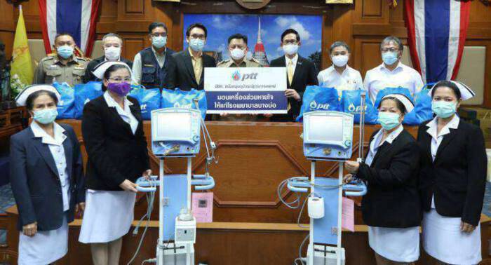 เมื่อเร็วๆ นี้ – นายอรรถพล ฤกษ์พิบูลย์ ประธานเจ้าหน้าที่บริหารและกรรมการผู้จัดการใหญ่ บริษัท ปตท. จำกัด (มหาชน) (ที่ 3 จากขวา แถวหลัง) มอบเครื่องช่วยหายใจ จำนวน 2 เครื่อง มูลค่า 1.5 ล้านบาท ให้แก่โรงพยาบาลบางบ่อ จ.สมุทรปราการ และเครื่องแบบข้าราชการตำรวจ จำนวน 115 ชุด มูลค่าประมาณ 4 แสนบาท ให้แก่สถานีตำรวจภูธรเปร็ง จ.สมุทรปราการ โดยมีนายแพทย์วี โรจนศิระประภา ผู้อำนวยการโรงพยาบาล    บางบ่อ (ที่ 4 จากซ้าย แถวหลัง) และ พ.ต.อ.สุรกิจ อินอ่ำ ผู้กำกับการสถานีตำรวจภูธรเปร็ง จังหวัดสมุทรปราการ (ซ้ายสุด แถวหลัง) เป็นผู้รับมอบ  โดยได้รับเกียรติจาก คุณวันชัย คงเกษม ผู้ว่าราชการจังหวัดสมุทรปราการ (ที่ 4 จากขวา แถวหลัง) เป็นประธานการรับมอบ ณ ศาลากลาง จังหวัดสมุทรปราการ เพื่อให้ทางโรงพยาบาลบางบ่อได้นำเครื่องช่วยหายใจไปใช้ประโยชน์ทางการแพทย์ และเครื่องแบบใช้ในการปฏิบัติหน้าที่ของข้าราชการตำรวจ อีกทั้งยังเป็นการขอบคุณในความช่วยเหลือบรรเทาทุกข์ประชาชนในพื้นที่จากเหตุการณ์ท่อก๊าซธรรมชาติรั่วที่เกิดขึ้น และกลับมาใช้ชีวิตได้อย่างปกติ