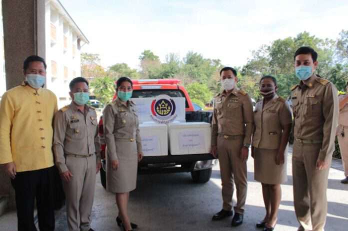 โดยมีนางรักใจ กาญจนะวีระ พัฒนาการจังหวัดนนทบุรี พร้อมด้วย ผู้อำนวยการกลุ่มงาน และเจ้าหน้าที่สำนักงานพัฒนาชุมชนจังหวัดนนทบุรี เป็นผู้แทนในการมอบผลิตภัณฑ์ในวันนี้ เพื่อให้ศูนย์ปฏิบัติการเหตุการณ์การแพร่ระบาดของโรคโควิด-19 (COVID-19) จังหวัดนนทบุรี นำไปมอบให้กับผู้ที่ได้รับผลกระทบจากการแพร่ระบาดของเชื้อไวรัสโคโรนา 2019 (COVID-19) โดยเฉพาะผู้ที่ถูกกักตัว และอาศัยในเขตอาคารที่เป็นพื้นที่ควบคุมสูงสุด