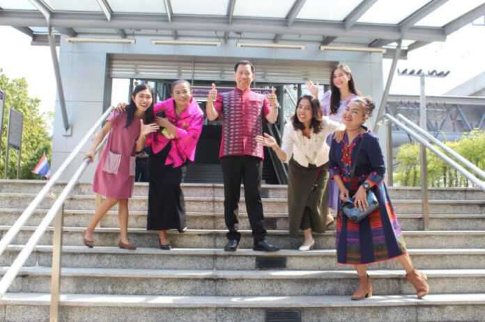 จังหวัดนนทบุรี ร่วมกับกรมการพัฒนาชุมชน โดยสำนักงานพัฒนาชุมชนจังหวัดนนทบุรี ร่วมน้อมนำพระดำริและสืบ สานพระราชปณิธานของสมเด็จพระเจ้าลูกเธอ เจ้าฟ้าสิริวัณณวรี นารีรัตนราชกัญญา จัดกิจกรรมประชาสัมพันธ์ “ผ้าไทยใส่ให้สนุก” พร้อมเชิญชวนคนไทยทุกเพศทุกวัย สวมใส่ผ้าไทยทุกที่ ทุกวัน ทุกโอกาส