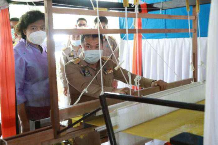 นายสุทธิพงษ์ อธิบดีกรมการพัฒนาชุมชน กล่าวเพิ่มเติมว่า ในโอกาสนี้ขอขอบคุณ กลุ่มทอผ้าโรงเรียนบ้านธรรมชาติล่างและกลุ่มทอผ้าโรงเรียนวัดบางปิดล่าง ที่ช่วยกันรวมกลุ่ม รวมถึงพี่น้องกลุ่ม OTOP ที่ช่วยบริจาคกี่ทอผ้าแก่กลุ่ม ช่วยกันดูแล สร้างสิ่งดีๆ ถักทอบนพื้นผ้าต่อไป แสดงให้เห็นนิมิตรหมายที่ดี ของการรวมกลุ่มเพื่อสนองแนวพระราชดำริ ในการสืบสาน อนุรักษ์ศิลป์ผ้าถิ่นไทย ดำรงไว้ในแผ่นดิน ในการส่งเสริมการประกอบอาชีพ สร้างงาน สร้างรายได้ เช่นเดียวกับทางสภาสตรีแห่งชาติในพระบรมราชินูปถัมภ์ เมื่อ 3 ปีที่แล้ว รณรงค์ส่งเสริมให้คนไทยสวมใส่ผ้าไทย ตามรอยแม่ของแผ่นดิน พระพันปีหลวง ตามพระองค์ท่านพระราชดำเนินส่งเสริมผ้าไทยในพื้นที่ต่างๆ เช่น นครพนม แม่ฮ่องสอน ขอนแก่น ปัตตานี ภูเก็ต และอีกหลายพื้นที่ เพื่อให้กำลังใจแก่กลุ่มทอผ้า อย่างต่อเนื่อง จนถึงวันที่ 6 มิถุนายน 2563 และได้มีมติคณะรัฐมนตรีเห็นชอบในวันที่ 9 มิถุนายน 2563 ให้ถือว่ามาตรการส่งเสริมสนับสนุนการใช้และสวมใส่ผ้าไทย เป็นนโยบายของรัฐบาลในการส่งเสริมให้ข้าราชการ ประชาชน แต่งกายด้วยผ้าไทย ตามความเหมาะสมของท้องถิ่นเพิ่มขึ้น หรืออย่างน้อยสัปดาห์ละ 2 วัน อีกทั้งยังให้ทุกกระทรวงรณรงค์การใช้และสวมใส่ผ้าไทยและผ้าพื้นเมือง เพื่อสร้างค่านิยม รักษามรดก อัตลักษณ์ภูมิปัญญาของไทย และอนุรักษ์ต่อยอดภูมิปัญญาพัฒนาผ้าไทย เพื่อเป็นสินค้าเศรษฐกิจเชิงสร้างสรรค์ และเป็นการส่งเสริมเผยแพร่เรื่องราวของผ้าให้ลูกหลานและสังคมได้รับรู้ ผ่านการจัดนิทรรศการ และส่งเสริมการรวมมกลุ่มการทอผ้าให้มากขึ้น ผ้าไทยจึงเป็นเรื่องที่สำคัญต่อการรักษาอัตลักษณ์ภูมิปัญญาของบรรพบุรุษไว้ไม่ให้สูญหาย แสดงให้เห็นถึงความกตัญญู มีหลักชัยที่สำคัญที่พระองค์ท่าน ส่งเสริม สนับสนุน การทอผ้า ที่ทำให้ 77 จังหวัด มีการทอผ้าครบทุกจังหวัด