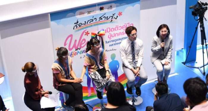สำนักงานกองทุนสนับสนุนการสร้างเสริมสุขภาพ (สสส.) ร่วมกับมูลนิธิเครือข่ายเพื่อนกะเทยเพื่อสิทธิมนุษยชน จัดเวทีเสวนา เรื่องเล่าสายรุ้ง We Are Different : A Journey of the Rainbow เปิดตัว “คู่มือผู้ปกครองในการดูแลบุตรหลานหลากหลายเพศ” เพื่อเป็นสื่อกลางการเรียนรู้ สร้างความเข้าใจผู้ปกครองให้รู้จักวิธีดูแลเด็ก-เยาวชนที่มีความหลากหลายทางเพศ ณ สามย่านมิตรทาวน์ กรุงเทพฯ
