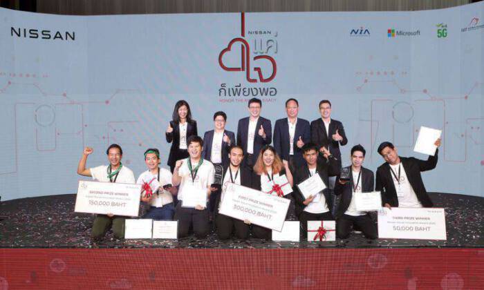 กรุงเทพฯ, ประเทศไทย – ทีม ‘Silapatech’ คว้าชัยชนะจากโครงการ “แค่ใจก็เพียงพอ” ปีที่ 4 โครงการการประกวดแข่งขันนวัตกรรมเพื่อสังคมที่จัดขึ้นโดยนิสสัน ประเทศไทย และพันธมิตรมากมาย ด้วยผลงานต้นแบบ ‘Soundawearดีไวส์อัจฉริยะ ที่จะเปลี่ยนเสียงต่าง ๆ เป็นการสั่นสะเทือนที่แตกต่างกัน เพื่อให้ผู้ที่มีความบกพร่องทางการได้ยิน สามารถรับรู้ และตอบสนองต่อเสียงต่าง ๆ โดยเฉพาะเสียงเตือนสถานการณ์อันตรายจากจุดที่อับสายตา อย่างเสียงแตรรถจากทางด้านหลังได้อย่างทันท่วงที รวมถึงยังขยายประสาทสัมผัส (sense) ให้พวกเขาสามารถรับรู้ถึงท่วงทำนองของบทเพลง และได้รับความเพลิดเพลินเหมือนคนทั่วไป สำหรับรางวัลชนะเลิศอันดับที่ 2 ทีม ‘GreenDot.’ กับผลงานแพลตฟอร์ม และแอปพลิเคชัน GreenDot. (กรีนดอท) ที่จะเป็นตัวกลางในการวิเคราะห์ความสามารถในการกำจัดคาร์บอนตามธรรมชาติของต้นไม้ ทั้งต้นไม้สาธารณะ ต้นไม้เอกชน และป่า ในแต่ละพื้นที่ทั่วประเทศไทย เพื่อการออกแบบ วางแผน และลงมือจัดการสิ่งแวดล้อมร่วมกันระหว่างภาครัฐและเอกชนได้อย่างมีประสิทธิภาพมากที่สุด และ อันดับที่ 3 ทีม ‘กาชาปองสุราษฎร์ธานี’ กับผลงาน ‘Gacha Thani’ ที่ช่วยพัฒนาประสบการณ์การท่องเที่ยวของจังหวัดสุราษฎร์ธานี และจังหวัดอื่น ๆ ในประเทศไทย ผ่านของที่ระลึกอย่างงานหัตถกรรมพื้นถิ่นในรูปแบบกาชาปอง และแอปพลิเคชันที่มีเทคโนโลยีสมัยใหม่ผสานภาพสามมิติ ที่ช่วยให้ชุมชนสามารถนำเสนอสถานที่ท่องเที่ยว เรื่องราวที่น่าสนใจ และโปรโมทสิ่งที่น่าสนใจเสมือนมีดิจิทัลไกด์ไปด้วยทุกที่