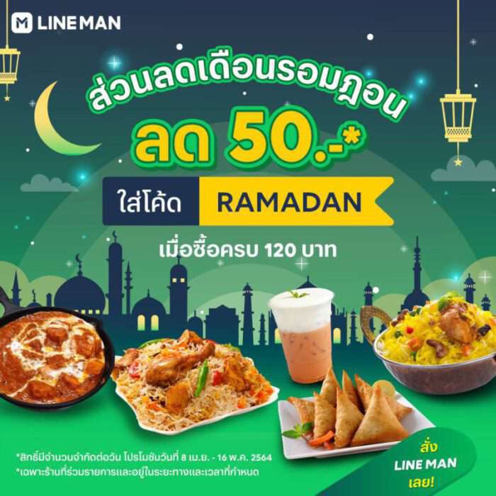 LINE MAN ส่งฟีเจอร์ค้นหา “อาหารมุสลิม/ฮาลาล” เสิร์ฟความอร่อยพร้อมรับส่วนลด 50 บาท ต้อนรับเดือนรอมฎอน ใส่โค้ด “RAMADAN” ตั้งแต่วันนี้ – 16 พ.ค.นี้