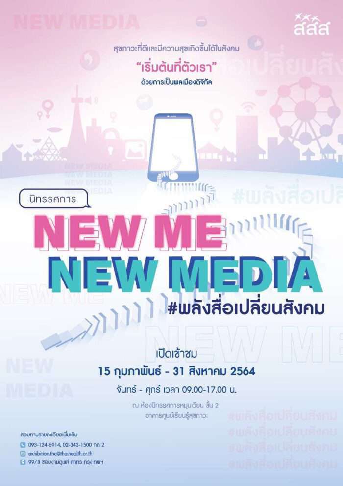 ทั้งนี้ นิทรรศการหมุนเวียน “New Me New Media #พลังสื่อเปลี่ยนสังคม” จัดแสดงตั้งแต่วันนี้ไปจนถึง 31 สิงหาคม 2564 ที่ชั้น 2 อาคารศูนย์เรียนรู้สุขภาวะ สสส. ซ.งามดูพลี รับจำนวนจำกัด เพียง 80 ท่านต่อวันเท่านั้น โดยมีการปฏิบัติตามมาตรการเฝ้าระวัง ป้องกัน และควบคุมโรคโควิด-19 อย่างเคร่งครัด สามารถลงทะเบียนเข้าชมที่เฟซบุ๊กแฟนเพจ SOOK หรืออีเมล์ exhibition.thc@thaihealth.or.th สอบถาม โทร. 093-124-6914