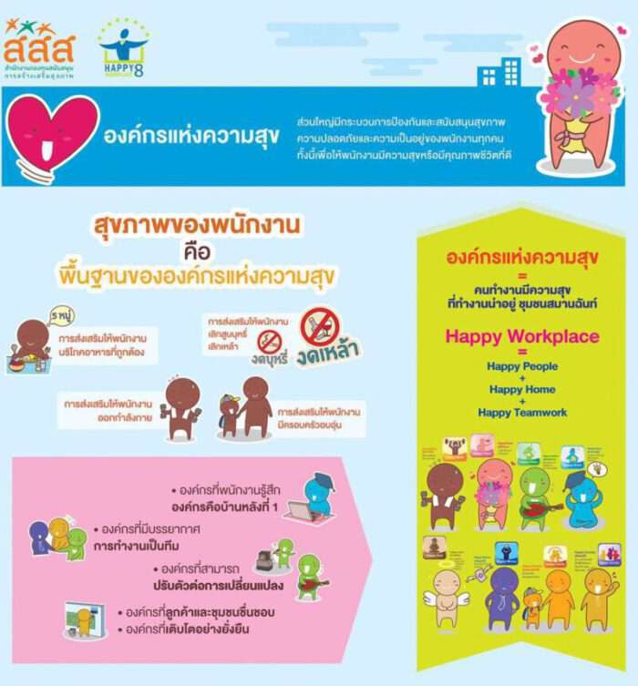 เผย แรงงานไทย 37 ล้านคน เสี่ยงโรค NCDs รุมเร้า แถมเครียดจัด สสส. ผนึก 3 กระทรวงหลักดูแลแรงงานไทย ชู 4 นวัตกรรม ยกระดับสุขภาพคนทำงาน สร้างองค์กรสุขภาวะต้นแบบ 180 แห่ง ปั้น ผู้นำสร้างสุขภาพ 600 คน ลุยศูนย์สุขภาพดีวัยทำงาน วิจัยดันกฎหมายช่วยเหลือ ยัน ผลสำเร็จนวัตกรรมแนวคิด Happy Workplace ช่วยแรงงาน SMEs มีความสุข