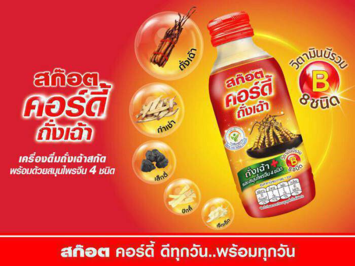บริษัท สก๊อต อินดัสเตรียล (ประเทศไทย) จำกัด เปิดตัวอีกหนึ่งผลิตภัณฑ์ใหม่ ตอบโจทย์คนรักสุขภาพ “สก๊อต คอร์ดี้” (Scotch Cordy) เครื่องดื่มถั่งเฉ้าสกัดและสมุนไพรผสมวิตามินที่รวบรวมคุณประโยชน์จากถั่งเฉ้าทิเบต สมุนไพรจีน 4 ชนิดและวิตามิน B รวม 8 ชนิดเข้าไว้ด้วยกัน อีกทั้งยังน้ำตาลน้อย แคลอรี่ต่ำ การันตีด้วยสัญลักษณ์ทางเลือกสุขภาพ อร่อย สดชื่น ไม่มีกาเฟอีน ซึ่งเป็นตัวช่วยที่ดี ที่จะช่วยดูแลสุขภาพร่างกายให้ สดชื่น แข็งแรง และพร้อมสำหรับทุกๆ วัน ด้วยปริมาณ 150 มล. ราคาขวดละ 15 บาท จำหน่ายแล้วที่ร้านสะดวกซื้อ ทั่วประเทศ