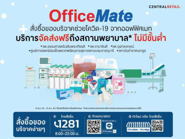 ออฟฟิศเมท ในเครือเซ็นทรัล รีเทล รวมพลังน้ำใจคนไทย “ส่งความห่วงใย สู้ภัย COVID-19” จัดแคมเปญสั่งซื้อของบริจาคช่วยบุคลากรทางการแพทย์ จากออฟฟิศเมท บริการจัดส่งฟรี..!!ถึง5 สถานพยาบาล* แบบไม่มีขั้นต่ำ