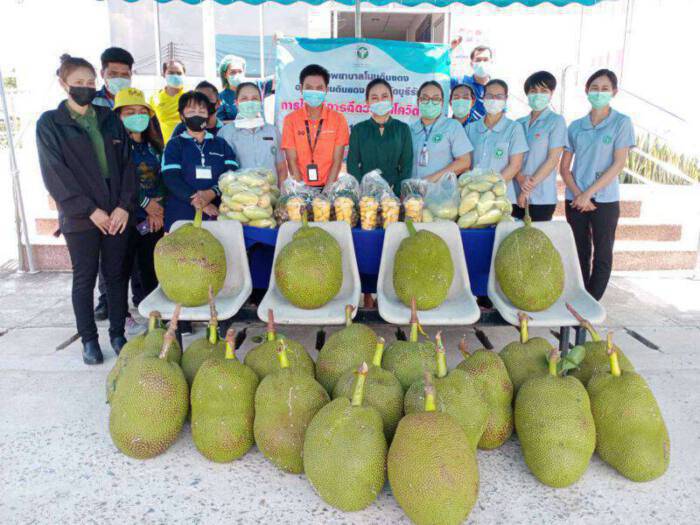 นอกจากนี้ ผู้แทนจำหน่าย สถานีบริการน้ำมัน พีทีที สเตชั่น หจก.มานะเสริมพลปิโตรเลียม สาขาโนนดินแดง ยังได้สนับสนุนขนุนและมะม่วงจากเกษตกร และนำไปมอบให้บุคลาการทางการแพทย์ของโรงพยาบาลโนนดินแดง เพื่อเป็นกำลังใจในการปฏิบัติหน้าทีเป็นด่านหน้าในการควบคุมสถานการณ์ โควิด 19 ในจังหวัดบุรีรัมย์อีกด้วย