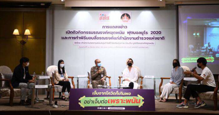 เมื่อวันที่ 10 มิถุนายน 2564 ที่ โรงแรมมิราเคิล แกรนด์ สำนักงานกองทุนสนับสนุนการสร้างเสริมสุขภาพ (สสส.) ร่วมกับมูลนิธิรณรงค์หยุดพนัน จัดเสวนารณรงค์รับมือกับการพนันช่วงการแข่งขันฟุตบอลชิงแชมป์แห่งชาติยุโรป หรือยูโร 2021 และพิธีมอบสื่อรณรงค์แก่สำนักงานตำรวจแห่งชาติ โดยมี พ.ต.อ.จีรเดช ชมบุญ ผู้กำกับการกลุ่มงานป้องกันปราบปรามอาชญากรรม กองแผนงานอาชญากรรม เป็นผู้รับมอบ เพื่อให้เยาวชนและประชาชนหยุดข้องเกี่ยวรู้เท่าทันสื่อโฆษณาที่เข้ามาชักชวนเล่นการพนัน