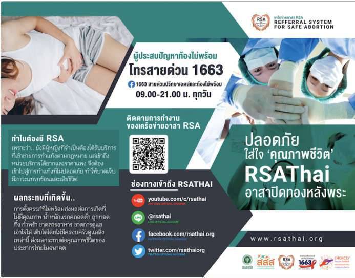 นายชาติวุฒิ วังวล ผู้อำนวยการสำนักสนับสนุนการควบคุมปัจจัยเสี่ยงทางสุขภาพ สำนักงานกองทุนสนับสนุนการสร้างเสริมสุขภาพ (สสส.) กล่าวว่า ตั้งแต่ปี 2548 สสส. ร่วมกับภาคีเครือข่ายสุขภาวะทางเพศ ทำงานสร้างทัศนคติเชิงบวกเรื่องเพศเพื่อลดการติดเชื้อเอชไอวี/เอดส์ โรคติดต่อทางเพศสัมพันธ์ ลดการตั้งครรภ์ในวัยรุ่น และเพิ่มการเข้าถึงสุขภาพอนามัยเจริญพันธุ์ที่ปลอดภัย ที่ผ่านมา สสส. ร่วมกับ กรมอนามัย กระทรวงสาธารณสุข เครือข่ายสนับสนุนทางเลือกผู้หญิงท้องไม่พร้อม เครือข่ายอาสาอาร์เอสเอ (Referral system for Safe Abortion : RSA) และมูลนิธิเข้าถึงเอดส์ พัฒนาระบบบริการให้คำปรึกษาเรื่องอนามัยการเจริญพันธุ์ที่ปลอดภัยในรูปแบบที่เข้าถึงได้ง่าย 2 ช่องทาง คือ 1.โทรศัพท์ 1663 สายด่วนปรึกษาเอดส์และท้องไม่พร้อม ให้คำปรึกษาเรื่องโรคติดต่อทางเพศสัมพันธ์ ทางเลือกในการคุมกำเนิด ทางเลือกในกรณีที่ตั้งครรภ์ไม่พร้อม 2.เว็บไซต์อาร์เอสเอไทย www.rsathai.org ให้คำปรึกษาคุมกำเนิดแบบกึ่งถาวร และทางเลือกในการตั้งครรภ์ ทั้งตั้งครรภ์ต่อ หรือยุติการตั้งครรภ์สำหรับหญิงตั้งครรภ์ที่ไม่พร้อมหรือไม่ได้มีการวางแผนครอบครัว