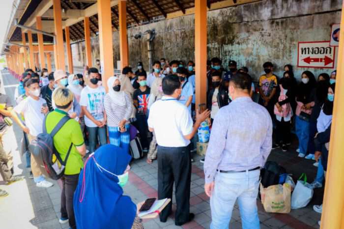 สำหรับกลุ่มแรงงาน จชต. ที่จะเดินทางวันนี้ จำนวน 80 คน ด้วยขบวนรถไฟสาย 172 เร็ว ต้นทางสถานีรถไฟยะลา ออกเวลา 13.53 น. ถึงสถานีปลายทางบ้านโป่ง จังหวัดราชบุรี ของเช้าวันที่ 28 มิถุนายน 2564 เวลา 08.40 น. โดยจะมีกลุ่มแรงงานสมทบอีก 10 คน ที่สถานีรถไฟบ้านโป่ง รวม 93 คน