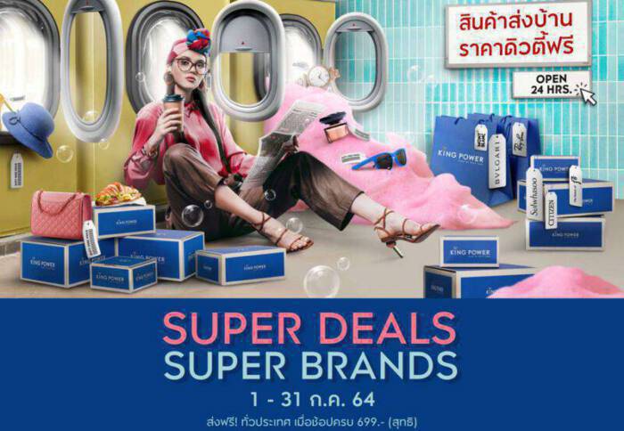 12 กรกฎาคม 2564 – คิง เพาเวอร์ ออนไลน์ จัดแคมเปญ SUPER DEALS SUPER BRANDS เอาใจนักช้อปทุกท่านกับสินค้าแบรนด์เนมในกลุ่มแฟชั่นและบิวตี้ลดราคาสูงสุด 30% พร้อมบริการ Home Delivery จัดส่งสินคฟรีถึงบ้าน ในราคาดิวตี้ฟรี ตลอดเดือนกรกฎาคมนี้ ผ่าน www.kingpower.com และคิง เพาเวอร์ แอปพลิเคชั่น