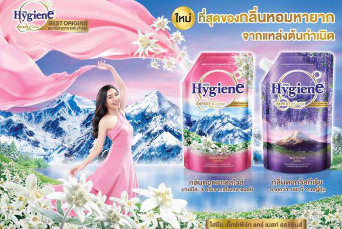 ไฮยีน เปิดตัว ผลิตภัณฑ์ปรับผ้านุ่มสูตรเข้มข้นพิเศษ “ไฮยีน เอ็กซ์เพิร์ท แคร์ เบสท์ ออริจินส์ – Hygiene Expert Care Best Origins” คัดสรรและสกัดจากดอกไม้หายากกับกลิ่นที่ดีที่สุดจากแหล่งต้นกำเนิด ด้วยสองกลิ่นใหม่ ได้แก่ “ไฮยีน เอ็กซ์เพิร์ท แคร์ กลิ่นดอกเอเดลไวส์” และ “ไฮยีน เอ็กซ์เพิร์ท แคร์ กลิ่นดอกวิสทีเรีย” และครั้งแรกของประเทศไทยที่ให้คุณสัมผัสกับพลังความหอมในรูปแบบ 4D Experience ผ่าน AR Scan Pack เจ้าแรกในกลุ่มผลิตภัณฑ์ประเภทดูแลบ้าน (Home Care)