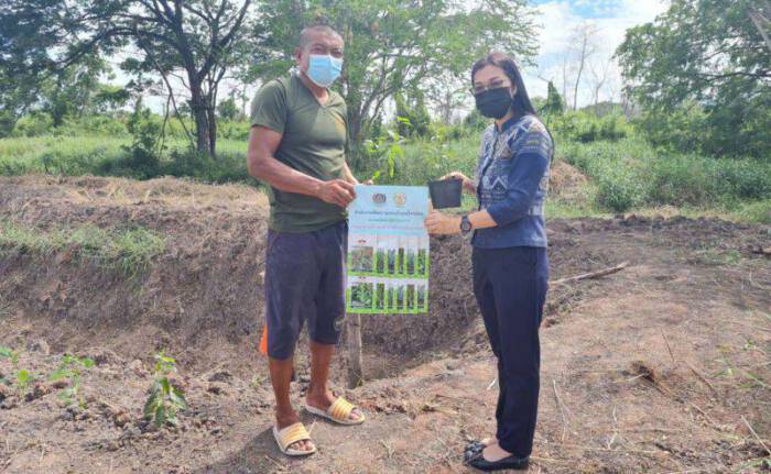 ในการนี้ สำนักพัฒนาชุมชนจังหวัดนนทบุรี โดยสำนักพัฒนาชุมชนอำเภอไทรน้อย ได้น้อมนำแนวพระราชดำริของสมเด็จพระกนิษฐาธิราชเจ้า กรมสมเด็จพระเทพรัตนราชสุดา ฯ สยามบรมราชกุมารี สู่ปฏิบัติการ 90 วัน ปลูกผักสวนครัว เพื่อสร้างความมั่นคงทางอาหาร โดยรณรงค์ให้มีการปลูกผักสวนครัวทั่วพื้นที่อำเภอ เน้นการพึ่งพาตนเอง เพื่อให้รอดพ้นจากสถานการณ์การแพร่ระบาดของโรคติดเชื้อไวรัสโคโรนา 2019 (Covid-19) และพร้อมเดินหน้าที่จะต่อยอดให้เกิดความสำเร็จอย่างยั่งยืน โดยจะขับเคลื่อนการดำเนินงาน สร้างความมั่นคงทางอาหาร สู่ปฏิบัติการ 90 วัน ปลูกผักสวนครัวเพื่อสร้างความมั่นคงทางอาหาร” รอบ 2 (ต่อเนื่อง) โดยการรณรงค์ให้ทุกครัวเรือนปลูกผักสวนครัว ภายใต้โครงการ “ คนนนท์ร่วมใจ ปลูกผักบ้านฉันแบ่งปันบ้านเธอ” อย่างต่อเนื่อง โดยเฉพาะจากสถานการณ์การแพร่ระบาดของโรคติดเชื้อไวรัสโคโรนา 2019 (COVID-19) การปลูกพืชสมุนไพรไทย นับเป็นอีกทางเลือกหนึ่งที่สามารถช่วยป้องกันโรคโควิด-19 และบรรเทาอาการเบื้องต้นของไข้หวัด หรือป้องกันการติดเชื้อได้ เช่น กระชาย พบว่า สารสกัดของกระชายขาว สามารถแสดงฤทธิ์ในการต้านไวรัสทั้งในระยะก่อนและหลังการติดเชื้อ นอกจากนี้ยังช่วยยับยั้งการแบ่งตัวของเชื้อไวรัสโควิด-19 เช่นเดียวกับ ฟ้าทะลายโจร โดยกรมการแพทย์ กระทรวงสาธารณสุข ให้การรับรองแล้วว่ามีสารแอนโดกราโฟไลด์ ที่สามารถรักษาโรคติดเชื้อไวรัสโคโรนา 2019 ได้ ดังนั้นสำนักพัฒนาชุมชนอำเภอไทรน้อย จึงเดินหน้าลงพื้นที่ส่งเสริมสนับสนุน การปลูกพืชสมุนไพรไทยให้กับครัวเรือนในพื้นที่ โดยได้มอบเมล็ดพันธุ์ผักตราศรแดง จำนวน 20 ซอง และมอบต้นฟ้าทะลายโจรและกระชาย เพื่อนำไปปลูกและต่อยอดขยายผลพืชสมุนไพรไทยภายในชุมชนและเพื่อเป็นการประชาสัมพันธ์เชิญชวนพี่น้องประชาชนในพื้นที่จังหวัดนนทบุรีร่วมกันสร้างความมั่นคงด้านอาหาร โดยในพื้นที่เกษตรพอเพียงดังกล่าว ได้ดำเนินการตามหลักปรัชญาของเศรษฐกิจพอเพียง ในพื้นที่ขนาดกว่า 2 ไร่ มีการขุดบ่อขนาด กว้าง 6 เมตร ยาว 25เมตร ลึก 2.5 เมตร เพื่อสำหรับเลี้ยงปลา เลี้ยงเป็ด พร้อมทั้งปลูกพืชสวนครัวต่างๆในพื้นที่ พร้อมทั้งเลี้ยงไส้เดือนเพื่อทำผลิตภัณฑ์น้ำหมักชีวภาพจากมูลไส้เดือน เพื่อทำเป็นอาชีพเสริมสร้างรายได้ให้กับครัวเรือน นอกจากนี้ ท่านพัฒนาการอำเภอไทรน้อย ยังได้ให้คำแนะนำในการบริหารจัดการพัฒนาและปรับภูมิทัศน์พื้นที่ตามแนวทางของการพัฒนาพื้นที่ต้นแบบตามหลักทฤษฎีใหม่ประยุกต์สู่ โคก หนอง นา พช. เพื่อยกระดับให้เป็นพื้นที่ศูนย์เรียนรู้ให้กั