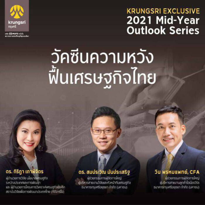 ต่อเนื่องกับการอัดแน่นข้อมูลวิเคราะห์เชิงลึกสุดเอ็กซ์คลูซีฟที่เป็นประโยชน์สำหรับนักธุรกิจนักลงทุนที่ต้องการจะเดินหน้าไปต่อหลังสถานการณ์โควิด-19 กับการสัมมนาแบบนิวนอร์มอลครั้งใหญ่แห่งปีตลอดเดือนกรกฎาคม 2564 โดยธนาคารกรุงศรีอยุธยา ซึ่งครั้งนี้กรุงศรีได้เตรียมหัวข้อที่ทุกคนอยากรู้และต้องการคำตอบมากที่สุดอย่าง “วัคซีนความหวังฟื้นเศรษฐกิจไทย” ที่เนื้อหาดีต่อใจคนฟัง ทำให้รู้สึกมีพลังและเห็นแสงสว่างที่ปลายอุโมงค์ กับการให้ความเห็นเชิงวิเคราะห์เจาะลึก รายงานผลการศึกษา และส่งต่อคำแนะนำให้คำปรึกษาจากขุนพลการเงินระดับแนวหน้าของไทย โดยได้รับเกียรติจากสองผู้เชี่ยวชาญของกรุงศรี และสถาบันวิจัยเพื่อการพัฒนาประเทศไทย (ทีดีอาร์ไอ) ร่วมให้ทัศนะถึงวัคซีนความหวังที่จะมีส่วนผลักดันการอยู่รอดและเพิ่มอัตราเร่งการเติบโตเศรษฐกิจไทย พร้อมเผยวิธีการจัดสรรเงินทุนพร้อมรับมือปัจจัยต่างๆ และแนวทางเลือกกลุ่มธุรกิจที่ “ฉายแวว” น่าลงทุนให้เจอ