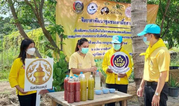 4) ฐานสาธิตการทำจุลินทรีย์สังเคราะห์แสง เพื่อนำไปบำรุงต้นไม้ พันธุ์พืช และพันธุ์ผัก ซึ่งเป็นการลดการใช้ปุ๋ยเคมี