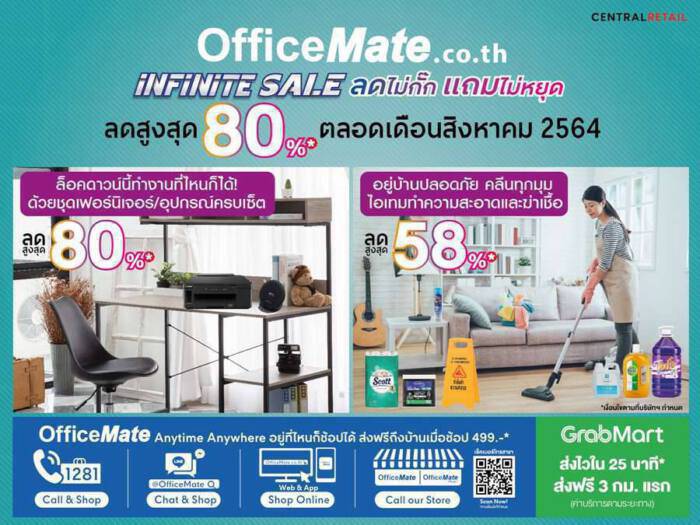ออฟฟิศเมท จัดแคมเปญ “INFINITE SALE ลดไม่กั๊ก แถมไม่หยุด” ให้ SME ประหยัดสูงสุด 80% ตลอดเดือนสิงหาคม 2564 พร้อมบริการส่งถึงบ้านเมื่อช้อป 499.-*