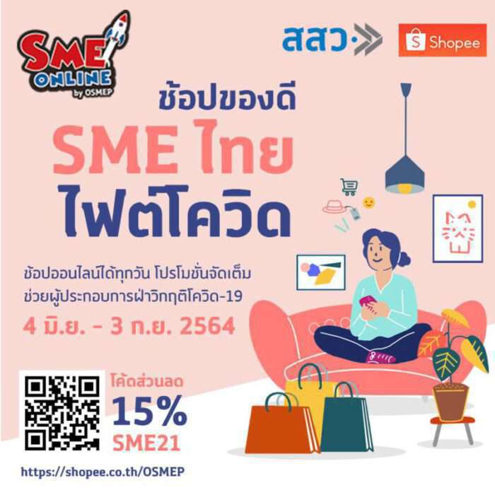 “ภายใต้โครงการนี้มีกิจกรรมส่งเสริมการตลาดให้ผู้ประกอบการอย่างหลากหลาย โดยหนึ่งในนั้นคือแพลตฟอร์ม Shopee ได้จัดแคมเปญ “ช้อปของดี SME ไทย ไฟต์โควิด” ซึ่งขณะนี้มีผู้ประกอบการเข้าร่วมกว่า 1,000 ราย มีสินค้ากว่า 60,000 รายการ ให้เลือก พร้อมด้วยส่วนลดพิเศษ ซึ่งจะมีไปจนถึง 3 กันยายน 2564 และยังได้เตรียมขยายระยะเวลาออกไปเพื่อช่วยเหลือผู้ประกอบการให้มีช่องทางจำหน่ายในช่วงวิกฤติโควิด-19 จึงขอเชิญชวนช่วยอุดหนุนผู้ประกอบการผ่านช่องทางออนไลน์ นอกจากนี้ผู้ประกอบการที่ต้องการเข้าร่วมแคมเปญก็สามารถติดต่อผ่าน 6 หน่วยร่วมดำเนินการของโครงการนี้ได้เช่นกัน” ผอ.สสว. กล่าวเชิญชวน