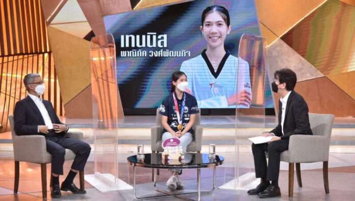 โดย “เทนนิส – พาณิภัค” ฮีโร่เหรียญทองโอลิมปิก 2020 เล่าว่า “จากเด็ก 9 ขวบ ที่ได้แรงบันดาลใจ เรื่องกีฬามาจากคุณพ่อ ซึ่งเป็นกำลังใจสำคัญที่ผลักดัน ให้หนูสู้และเดินบนเส้นทางนี้ ช่วงเวลาที่ฝึกฝนก็เต็มที่ แต่บางครั้งก็ยังขาดวินัยอยู่บ้าง หนูก็ได้โค้ชและสมาคมกีฬาเทควันโดแห่งประเทศไทยที่คอยดูแลอย่างอบอุ่น อยู่กันเหมือนเป็นครอบครัว คอยเคี่ยวเข็ญ ขอบคุณที่ไม่ถอดใจและประคองกัน จนผ่านความพ่ายแพ้ที่เจ็บปวด ในช่วงเวลาที่หนูเกือบจะถอดใจหันหลังกลับไปเป็นเด็กธรรมดาแล้ว แต่ทุกคนก็คอยปลอบ จนต้องใช้นักจิตวิทยาเข้าช่วย ให้ผ่านคืนวันที่อดทน พยายามฝึกซ้อมอย่างหนัก เพื่อจะไปให้ถึงความฝัน หลังจากความทุ่มเทพยายาม วันนี้หนูไม่เสียดายมันเลย มันเหนื่อยแต่มันก็คุ้มที่เราแลกกับมันมา ขอบคุณทุกคนที่อยู่เบื้องหลังความสำเร็จนี้ และขอบคุณผู้สนับสนุนทุกท่านด้วย มีวันนี้ได้เพราะทุกคนค่ะ”