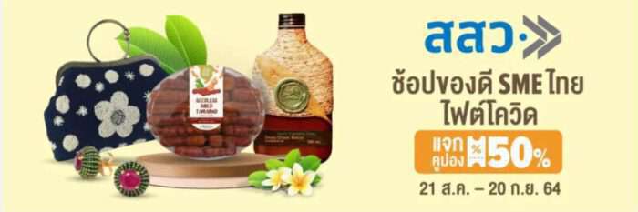 ทั้งนี้ แคมเปญ “ช้อปของดี SME ไทย ไฟต์โควิด” บนแพลตฟอร์ม JD CENTRAL – LAZADA – SHOPEE จัดขึ้นระหว่าง 21 สิงหาคม – 20 กันยายน 2564 พบกับสินค้าคุณภาพดีที่คัดสรรจากผู้ประกอบการเอสเอ็มอีทั่วประเทศ ให้ได้เลือกช้อปกันอย่างจุใจในราคาพิเศษ พร้อมโปรโมชั่นและโค้ดส่วนลดจากทุกแพลตฟอร์ม โดยผู้สนใจสามารถเลือกซื้อสินค้าผ่านแพลตฟอร์มที่ต้องการได้ที่เว็บไซต์กลาง https://smeonline2021.com หรือผ่าน application SME Connext