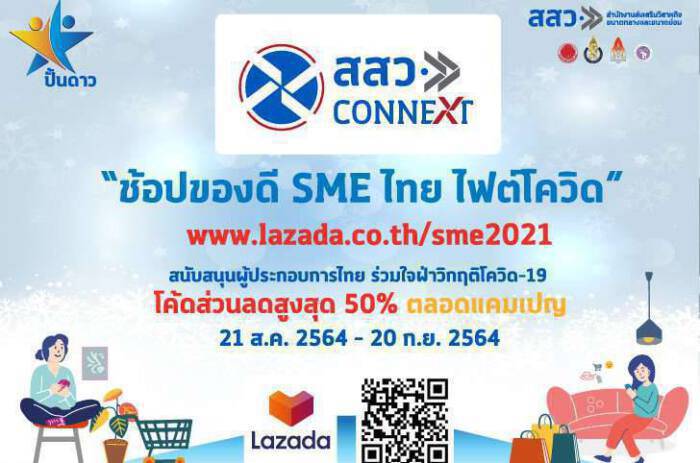 ทั้งนี้ แคมเปญ “ช้อปของดี SME ไทย ไฟต์โควิด” บนแพลตฟอร์ม Lazada จัดขึ้นระหว่าง 21 สิงหาคม – 20 กันยายน 2564 พบกับสินค้าคุณภาพดีที่ได้คัดสรรจากผู้ประกอบการเอสเอ็มอีทั่วประเทศ ให้ได้เลือกช้อปกันอย่างจุใจในราคาพิเศษ พร้อมโปรโมชั่นและโค้ดส่วนลดมากมายทุกวัน โดยผู้สนใจสามารถเลือกซื้อสินค้าผ่าน lazada.co.th/sme2021 หรือผ่าน application SME Connext