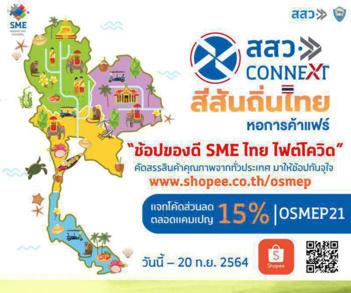 นายวีระพงศ์ มาลัย ผู้อำนวยการสำนักงานส่งเสริมวิสาหกิจขนาดกลางและขนาดย่อม (สสว.) เปิดเผยว่า ปีนี้ สสว. ดำเนินโครงการกับหลายหน่วยร่วมในการพัฒนาผู้ประกอบการ SME ทั่วประเทศ โดย โครงการพัฒนาศักยภาพและช่องทางการตลาดเชิงลึกสำหรับผู้ประกอบการ SME ปีงบประมาณ 2564 หรือ “SME สีสันถิ่นไทย หอการค้าแฟร์” ซึ่งร่วมดำเนินการกับหอการค้าไทย เป็นหนึ่งในโครงการที่มีวัตถุประสงค์เพื่อสร้างโอกาสด้านการตลาดและสร้างรายได้ให้แก่ผู้ประกอบการ SME ทุกกลุ่มทั่วประเทศ แต่เนื่องจากสถานการณ์การแพร่ระบาดของโควิด-19 ทำให้ต้องงดการจัดงานในลักษณะออฟไลน์ จึงได้ร่วมมือกับหอการค้าไทยสนับสนุนให้ผู้ประกอบการที่ได้ลงทะเบียนเตรียมออกบูธในจังหวัดต่างๆ เปิดร้านค้าออนไลน์บนแพลตฟอร์ม Shopee ซึ่งมีความร่วมมือกับ สสว. อยู่แล้วภายใต้แคมเปญ “ช้อปของดี SME ไทย ไฟต์โควิด” เพื่อส่งเสริมให้ผู้ประกอบการสามารถมีช่องทางการจำหน่ายสินค้าได้ แม้จะไม่ได้มีการจัดงานในลักษณะออฟไลน์
