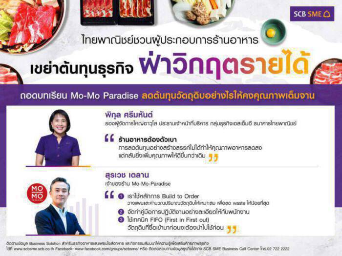 ไทยพาณิชย์ ชวนผู้ประกอบการร้านอาหารเขย่าต้นทุนธุรกิจฝ่าวิกฤตรายได้ ถอดบทเรียน Mo-Mo Paradise ลดต้นทุนวัตถุดิบอย่างไรให้คงคุณภาพเต็มจาน