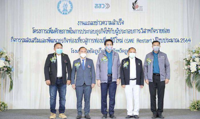 วันนี้ (24 กันยายน 2564) สำนักงานส่งเสริมวิสาหกิจขนาดกลางและขนาดย่อม (สสว.) ร่วมกับ สภาอุตสาหกรรมท่องเที่ยวแห่งประเทศไทย (สทท.) จัดงานแถลงข่าวความสำเร็จโครงการเพิ่มศักยภาพในการประกอบธุรกิจให้กับผู้ประกอบการวิสาหกิจรายย่อย กิจกรรมส่งเสริมและพัฒนาธุรกิจท่องเที่ยวสู่การท่องเที่ยววิถีใหม่ (SME Restart) ปีงบประมาณ 2564 พร้อมจัดกิจกรรมเสวนาถอดบทเรียนจากโครงการดังกล่าว ณ โรงแรมรอยัล ภูเก็ต ซิตี้ จังหวัดภูเก็ต