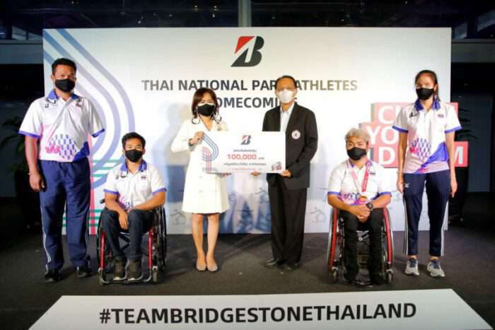 บริดจสโตน ร่วมยินดี 4 นักกีฬาพาราลิมปิกทีมชาติไทย พร้อมส่งมอบ 100,000 บาท จากแคมเปญ “1 กำลังใจให้ยกกำลัง 10” เพื่อ “มูลนิธิเมาไม่ขับ”