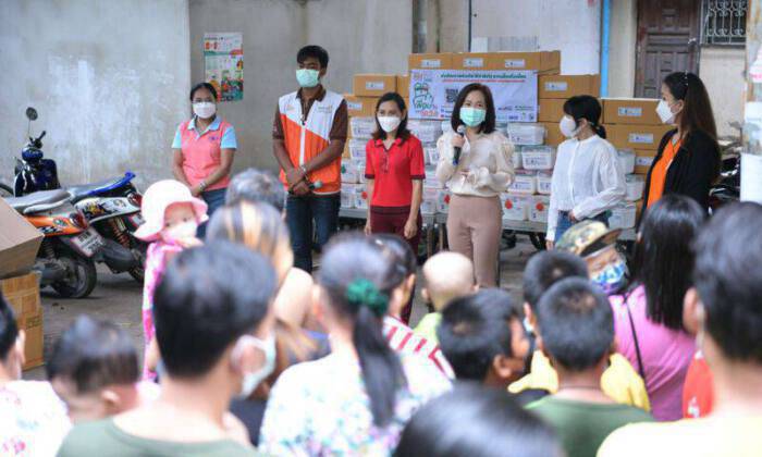 เมื่อวันที่ 26 กันยายน 2564 ที่ชุมชนแรงงานข้ามชาติเทียนทะเล ซอย 26 เขตบางขุนเทียน กรุงเทพฯ นางภรณี ภู่ประเสริฐ ผู้อำนวยการสำนักสนับสนุนสุขภาวะประชากรกลุ่มเฉพาะ สำนักงานกองทุนสนับสนุนการสร้างเสริมสุขภาพ (สสส.) พร้อมด้วย นางสาวภาสวรรณ สังฆสุบรรณ์ ผู้อำนวยการศูนย์กิจการสร้างสุข สสส. ลงพื้นที่มอบชุด Home Isolation เพื่อนกันวันติดโควิด 850 ชุด ให้แก่ตัวแทนอาสาสมัครสาธารณสุขต่างด้าว (อสต.) มูลนิธิศุภนิมิตแห่งประเทศไทย และมูลนิธิเพื่อเยาวชนชนบท (มยช.) เพื่อนำไปส่งต่อกลุ่มแรงงานข้ามชาติที่ขาดโอกาสเข้าถึงอุปกรณ์ป้องกันจำเป็นในช่วงสถานการณ์โควิด-19
