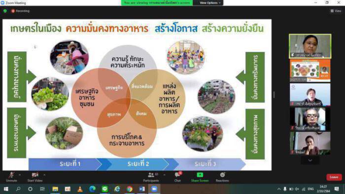 นางสาววรางคนางค์ กล่าวว่า การส่งเสริมการทำเกษตรในเมือง ได้นำร่องใน 6 จังหวัด 30 ชุมชน ได้แก่ กรุงเทพฯ 19 ชุมชน ปทุมธานี 3 ชุมชน สมุทรปราการ 3 ชุมชน สมุทรสาคร 2 ชุมชน ชลบุรี 2 ชุมชน และนนทบุรี 1 ชุมชน คนในชุมชนสร้างแหล่งผลิตอาหารได้ด้วยตัวเอง สามารถลดรายจ่ายในครัวเรือนได้ถึง 300-500 บาทต่อวัน มีคนในชุมชนเข้าร่วมเป็นแกนนำกว่า 1,000 คน มุ่งเป้ากระจายความมั่นคงด้านอาหารไปสู่ผู้ได้รับผลกระทบในชุมชนเมืองทั่วประเทศ ลดความเปราะบางด้านอาหารแม้ต้องเผชิญภาวะวิกฤต