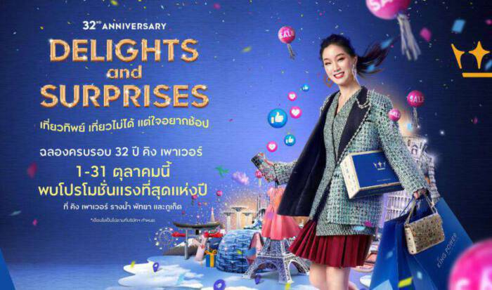 5 ตุลาคม 2564 – คิง เพาเวอร์ จัดแคมเปญ 32ND ANNIVERSARY DELIGHTS & SURPRISES เที่ยวทิพย์ -เที่ยวไม่ได้ แต่ใจอยากช้อป โปรแกรมช้อปที่คุ้มค่าที่สุดแห่งปีกับสิน-ค้า Home Delivery ที่ไม่ต้องมีไฟลต์บินก็ซื้อได้ ที่ คิง เพาเวอร์ รางน้ำ พัทยา ภูเก็ต ตลอดเดือนตุลาคม นี้ และ ที่ www.kingpower.com และคิง เพาเวอร์ แอปพลิเคชั่น