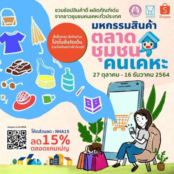 ทั้งนี้ แคมเปญพิเศษ “มหกรรมสินค้า ตลาดชุมชนคนเคหะ” บนแพลตฟอร์ม Shopee ขึ้นระหว่าง 27 ตุลาคม – 26 ธันวาคม 2564 พบกับสินค้าหลากหลายจากผู้อยู่อาศัยในโครงการ/ชุมชนของการเคหะแห่งชาติทั่วประเทศ ให้ได้เลือกช้อปกันอย่างจุใจในราคาพิเศษ พร้อมโปรโมชั่นและโค้ดส่วนลด โดยผู้สนใจสามารถเลือกซื้อและอุดหนุนได้ที่เว็บไซต์กลาง https://shopee.co.th/NHA และสำหรับความร่วมมือระหว่างการเคหะฯและช้อปปี้ในครั้งนี้ ถือเป็นการเปิดตัวแคมเปญครั้งพิเศษเพื่อร่วมเฉลิมฉลองไปกับมหกรรมช้อปปิ้งออนไลน์สุดยิ่งใหญ่แห่งปี Shopee 11.11 Big Sale 2021 ที่ช้อปปี้เตรียมความคุ้มค่าและความบันเทิงมากมายมามอบให้พี่น้องชาวไทยทุกคน โดยสามารถติดตามรายละเอียดเพิ่มเติมได้ที่ https://shopee.co.th/m/11-11
