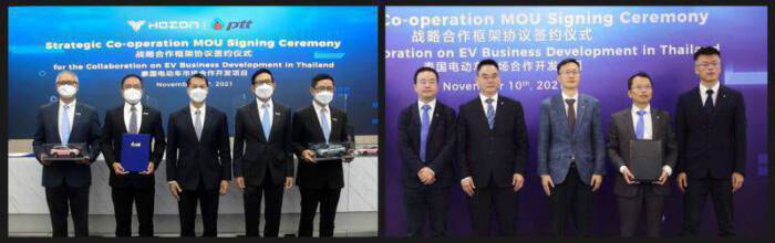 10 พฤศจิกายน 2564 – ดร. ทวารัฐ สูตะบุตร หัวหน้าผู้ตรวจราชการกระทรวงพลังงาน เป็นประธานในพิธีลงนามบันทึกข้อตกลงความร่วมมือเพื่อศึกษาความเป็นไปได้สำหรับโอกาสทางธุรกิจและการผลิตยานยนต์ไฟฟ้า (EV) ในประเทศไทย ในรูปแบบเสมือนจริง (Virtual Strategic Co-Operation MOU Signing Ceremony) ระหว่าง บริษัท อรุณ พลัส จำกัด (ARUN PLUS) ซึ่งเป็นบริษัทย่อยที่ ปตท. ถือหุ้น 100% สำหรับดำเนินธุรกิจในด้าน EV Value Chain และ บริษัท โฮซอน นิว เอนเนอร์ยี่ ออโต้โมบิล จำกัด (Hozon New Energy Automobile Co., Ltd; Hozon) บริษัทผู้ผลิตรถยนต์ไฟฟ้าจากประเทศจีน โดยมีนายอรรถพล ฤกษ์พิบูลย์ ประธานเจ้าหน้าที่บริหารและกรรมการผู้จัดการใหญ่ บริษัท ปตท. จำกัด (มหาชน) และนายจาง หย่ง ผู้ร่วมก่อตั้งและประธานเจ้าหน้าที่บริหาร โฮซอน (Mr. Zhang Yong, Co-Founder and Chief Executive Officer of Hozon) และนายบุรณิน รัตนสมบัติ รองกรรมการผู้จัดการใหญ่นวัตกรรมและธุรกิจใหม่ ปตท. ร่วมเป็นสักขีพยานในพิธี พร้อมด้วยนายนพดล ปิ่นสุภา ประธานเจ้าหน้าที่ปฏิบัติการกลุ่มธุรกิจใหม่และโครงสร้างพื้นฐาน ปตท. และนายเฉิน เอี้ยวกวง ผู้ร่วมก่อตั้งและประธานเจ้าหน้าที่บริหารการลงทุน โฮซอน (Mr. Chen Yaoguang, Co-Founder and Chief Investment Officer of Hozon) ร่วมลงนาม ความร่วมมือในครั้งนี้มุ่งศึกษาความเป็นไปได้ในการขยายโอกาสทางธุรกิจ EV แบบครบวงจร อาทิ ให้บริการเช่า หรือ จัดจำหน่าย EV พวงมาลัยขวารุ่นแรกของแบรนด์ Neta V ผลิตโดย Hozon และบริการหลังการขายที่เกี่ยวข้องผ่าน EVme ดิจิทัลแพลตฟอร์มของ ARUN PLUS รวมถึงความเป็นไปได้ในการขยายฐานการผลิต EV มายังประเทศไทย ผ่านบริษัทร่วมทุนระหว่าง ARUN PLUS กับ บริษัท หงไห่ พริซิชั่น อินดัสทรี จำกัด หรือ ฟ็อกซ์คอนน์ (Foxconn) เป็นต้น เพื่อขับเคลื่อนระบบนิเวศอุตสาหกรรมยานยนต์ไฟฟ้าสมัยใหม่ ส่งเสริมภาคการผลิตและเศรษฐกิจของประเทศ พร้อมดันไทยสู่สังคม Low Carbon และการเป็นศูนย์กลางยานยนต์ไฟฟ้าแห่งอนาคตเต็มรูปแบบ