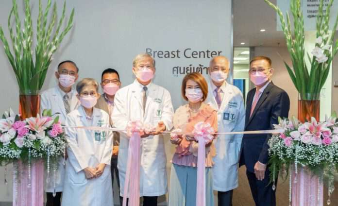 รศ.นพ. วิชัย วาสนสิริ แพทย์ผู้ชำนาญการด้านศัลยศาสตร์ และหัวหน้าศูนย์เต้านม โรงพยาบาลบำรุงราษฎร์ กล่าวว่า “จากสถิติต่างๆ จะเห็นได้ว่า เรายังคงต้องรณรงค์อย่างต่อเนื่องเพื่อให้ประชาชนเห็นถึงความสำคัญและตระหนักรู้เกี่ยวกับโรคมะเร็งเต้านมในวงกว้างมากขึ้น เนื่องจากหากตรวจพบในระยะเริ่มต้น ก็มีโอกาสรักษาหายและอัตราการรอดชีวิตสูง โดยมีสาเหตุและหลายปัจจัยที่เพิ่มความเสี่ยง ได้แก่ เมื่อมีอายุมากขึ้น ในวัย 40 ปีขึ้นไป, พฤติกรรมการบริโภคอาหารที่มีไขมันสัตว์สูงและสัตว์เนื้อแดง, การใช้ชีวิตประจำวันที่เสี่ยงต่อการเกิดโรค ทั้งโรคอ้วน สูบบุหรี่ ดื่มแอลกอฮอล์ ขาดการออกกำลังกาย, ระยะเวลาที่ร่างกายสัมผัสกับฮอร์โมนเอสโตรเจน คือในผู้หญิงที่เริ่มมีรอบเดือนก่อนอายุ 12 ปี หรือหมดประจำเดือนหลังอายุ 55 ปี หรือรับประทานยาคุมกำเนิดเป็นเวลานาน ผู้ที่เคยได้รับรังสีบริเวณหน้าอกบ่อยๆ, มารดาที่มีบุตรคนแรกหลังอายุได้ 35 ปี, ผู้ที่มีประวัติครอบครัวเป็นมะเร็งเต้านมหรือมะเร็งรังไข่ โดยเฉพาะญาติสายตรง เช่น แม่ หรือพี่น้อง มีประวัติเป็นมะเร็งเต้านมก่อนอายุ 40 ปี ก็ยิ่งมีแนวโน้มเป็นโรคมะเร็งเต้านมมากยิ่งขึ้น รวมถึงการกลายพันธุ์ของยีน BRCA1 หรือ BRCA2 ก็มีความสัมพันธ์กับการเพิ่มความเสี่ยงของการเกิดมะเร็งเต้านม ซึ่งปัจจุบันบำรุงราษฎร์มีบริการตรวจการกลายพันธุ์ของยีนได้”