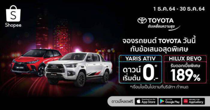 แจกหนัก แจกใหญ่ เซอร์ไพรส์จัดเต็ม ขนาดนี้ พลาดไม่ได้โดยเด็ดขาด ผู้ที่สนใจสามารถดูรายละเอียดเพิ่มเติมได้ที่ https://shopee.co.th/m/toyota-motors-promotion-12-12-21