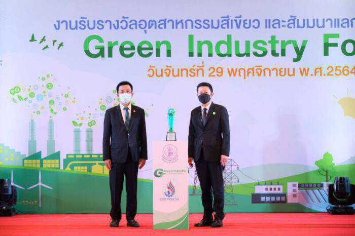 นายดำรงค์ศักดิ์ จัตุรงค์พัฒนา (ขวา) ผู้จัดการโครงการขยายการลงทุน บริษัท เหล็กสยามยามาโตะ จำกัด หรือ SYS ผู้ผลิตเหล็กเอชบีม ไวด์แฟลงก์ มานานมากกว่า 25 ปี เป็นตัวแทนเข้ารับรางวัลอุตสาหกรรมสีเขียวระดับที่4: วัฒนธรรมสีเขียว (Green Culture) จากนายวันชัย พนมชัย (ซ้าย) อธิบดีกรมโรงงานอุตสาหกรรม จัดมอบรางวัล ณ ห้องประชุมวายุภักษ์ 567 โรงแรมเซ็นทราบายเซ็นทารา ศูนย์ราชการฯ กรุงเทพมหานคร เมื่อไม่นานมานี้ โดยรางวัลอุตสาหกรรมสีเขียวระดับที่4 ด้านวัฒนธรรมสีเขียว (Green Culture) นี้ กรมโรงงานอุตสาหกรรม (กรอ.) มอบให้ไว้เพื่อแสดงให้เห็นว่าบริษัท เหล็กสยามยามาโตะ จำกัด หรือ SYS เป็นสถานประกอบการที่มีการบริหารจัดการด้านสิ่งแวดล้อมและความปลอดภัยที่อยู่ในเกณฑ์ดีเยี่ยม