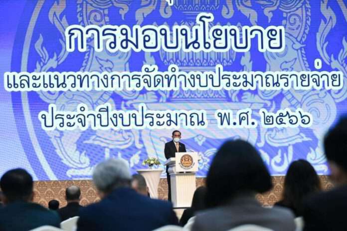 พลเอก ประยุทธ์ จันทร์โอชา นายกรัฐมนตรีและรัฐมนตรีว่าการกระทรวงกลาโหม กล่าวตอนหนึ่งว่า การใช้จ่ายประจำปีของภาครัฐ ปีงบประมาณ 2566 ถือเป็นปัจจัยสำคัญในเรื่องการฟื้นฟูของเศรษฐกิจให้เป็นไปอย่างต่อเนื่อง ควบคู่ไปกับการขับเคลื่อนยุทธศาสตร์ชาติ แผนแม่บท และแผนพัฒนาเศรษฐกิจและสังคมแห่งชาติ ซึ่งแนวทางการจัดทำงบประมาณปี 2566 วัตถุประสงค์เพื่อให้การใช้จ่ายงบประมาณ สามารถจะขับเคลื่อนพัฒนาตามยุทธศาสตร์ชาติได้อย่างต่อเนื่อง และแก้ไขปัญหา ที่สำคัญของประเทศได้อย่างมีประสิทธิภาพประสิทธิผล และเกิดผลอย่างเป็นรูปธรรม โดยการจัดทำงบประมาณมุ่งเน้นการแก้ไขปัญหาความยากจนแบบพุ่งเป้า การเรียนรู้เทคโนโลยีการเกษตรสมัยใหม่และเศรษฐกิจฐานรากถือเป็นเศรษฐกิจสำคัญ พร้อมเน้นย้ำให้บริหารรายจ่ายงบประมาณประจำปีอย่างมีประสิทธิภาพ นำเทคโนโลยีสารสนเทศมาปรับใช้ให้เกิดประสิทธิภาพมากยิ่งขึ้น รวมไปถึงประเมินผลสัมฤทธิ์ของการดำเนินการว่าเป็นไปตามแผนที่กำหนดไว้มากน้อยเพียงใด หากโครงการใดไม่สามารถบรรลุตามเป้าหมายที่กำหนดไว้จะต้องยกเลิกเรื่องนี้ เป็นสำคัญที่สุด