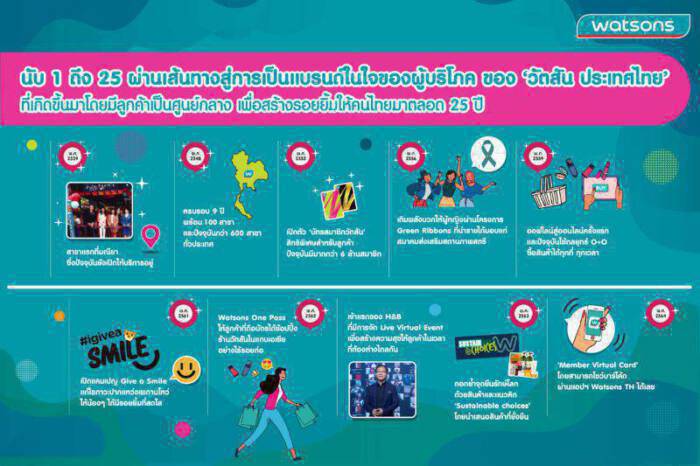 ทั้งหมดนี้เป็นเพียงส่วนหนึ่งในเส้นทางการเดินทางอันยาวนานของวัตสันตลอดระยะเวลากว่า 25 ปีที่ผ่านมา และหลายๆ คนอาจเห็นแล้วว่าแบรนด์ที่สามารถอยู่มาได้นานจะต้องมีการปรับตัวให้สอดรับกับพฤติกรรมของผู้บริโภคที่เปลี่ยนแปลงไปในแต่ละยุค แต่ละสมัย และที่สำคัญการมีลูกค้าเป็นศูนย์กลางคืออีกหนึ่งปัจจัยหลักที่สามารถทำให้แบรนด์สามารถอยู่ต่อไปได้อีกยาวนาน