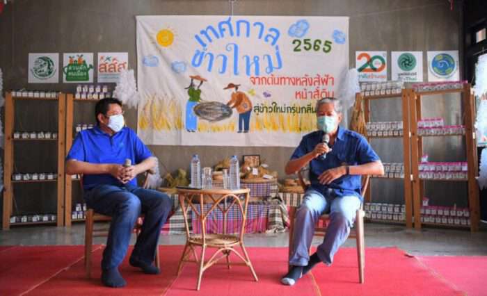ทั้งนี้ ภายในงานยังมีกิจกรรม ‘ล้อมวงกินข้าว เล่าเรื่องในนา’ ซึ่งเชิญนักวิชาการ นักเขียน เชฟ ชาวนา มาพูดคุยถึงประเด็นเกี่ยวกับแนวทางการพัฒนาการผลิตข้าวไทยอย่างยั่งยืน พร้อมนำเสนอเมนูอาหารพื้นถิ่นจากกลุ่มพี่น้องเกษตรกรอินทรีย์ 4 ภาค อาทิ แกงส้มมันขี้หนู ต้มยำปลาช่อนโบราณ ปลากระโทงแดดเดียว น้ำพริกปลาสด และผักพื้นบ้านนานาชนิดส่งตรงจากสวนทั่วไทย