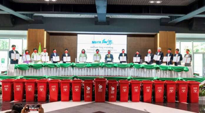 14 องค์กรเครือข่ายร่วมลงนามบันทึกข้อตกลงความร่วมมือโครงการจัดการขยะติดเชื้อ “ทิ้งถูก ผูกโบแดง โควิดไม่กระจาย”